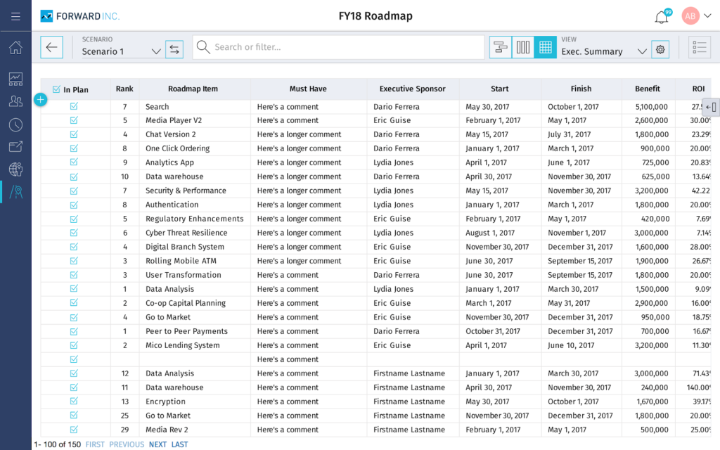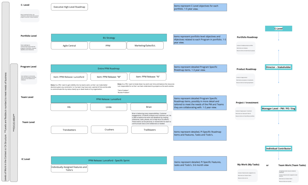 Hypothetically, during a meeting, a director can build and share a roadmap with the executive team and speak about relevant metrics and status updates that make sense to the group at that level. Later that day, the same director can sit with their direct reports and share a more detailed, granular view of how the work is being done, day-to-day. Behind the scenes, WBS is tracking the progress of these projects using attributes that are constantly updated in real-time and presented to each persona type, at each level of the company in ways that makes the most sense to them.