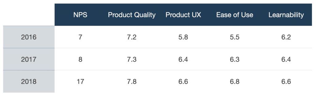 Over time, our NPS started to improve and key metrics for usability steadily increased, too: