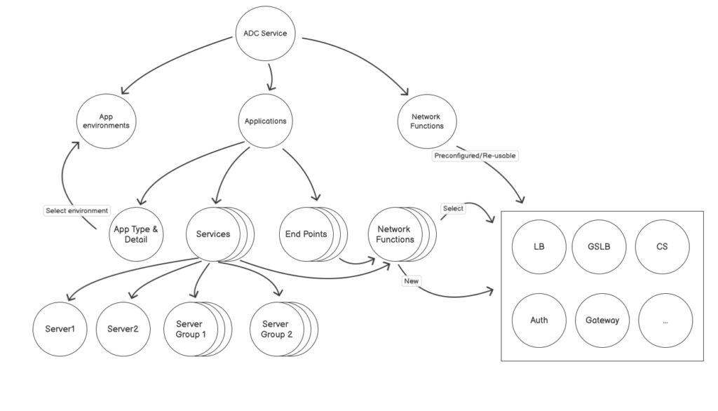One goal of ADS was to make much of the core contents reusable within each app it was supporting. Metaphors and sayings like “building with Legos” or “when ordering at a restaurant, the person doesn’t care about each and every ingredient, just the dish served at their table” were used often. In ADS, NF are like ingredients that make up a meal. They can be reused in different apps and changed in or out over time as the meal (or menu) evolves. For instance: if thresholds are breached or security needs to be strengthened, administrators can alter some of the parameters of the NF and deploy it to all apps that consume it.